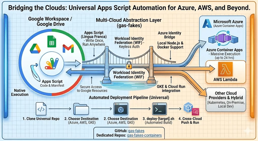 TL;DR: By using the @mcpher/gas-fakes library and Workload Identity Federation, you can run native Apps Script logic on Azure Container Apps Jobs. This approach offers a massive 24-hour execution window, making it suitable for high-intensity tasks like large data migrations or security scans that would otherwise time out in the standard Google environment.